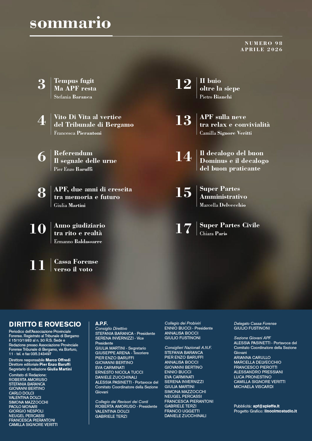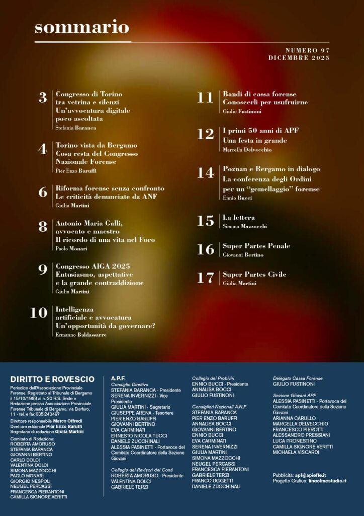 Il Periodico dell’Associazione Provinciale Forense. Scarica in formato PDF il numero 97 di Dicembre 2025.